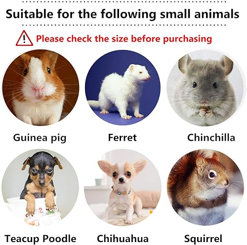 Size: Chest Girth 4.5"-7.0", Neck Girth 2.5"-5.5", Back Length 2.8". It comes with 4.4ft leash. Please check the size before purchase. This small animal harness is suitable for for baby ferrets, pet rats, guinea pig, chinchilla, teacup chihuahua and other very small pets