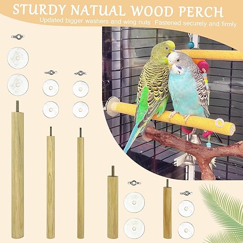 Sturdy Natual Wood Perch:Our attached metal washers are both bigger and thicker.Securely and firmly fastened to cage, provide your pet with a safe and comfortable place to rest.