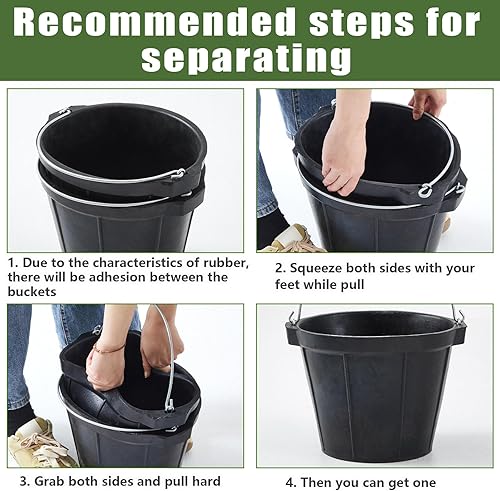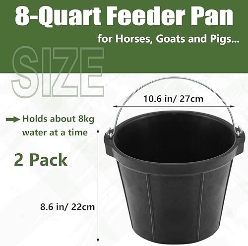 Animal Feeding, One Pan at a Time: about 10.6 inches/ 27 cm of external diameter, about 8.6 inches/ 22 cm height in size, this horse feed bucket provides ample space to accommodate a substantial amount of feed, rambunctious animals; It includes 2 pieces ready for daily use and replacement; Warm tip: due to the characteristics of rubber, there will be adhesion between the buckets, you can squeeze both sides with your feet, while pull it hard to remove