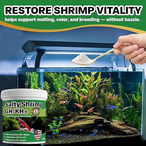 Salty Shrimp GH/KH+ for prime ghost shrimp, aquarium shrimp, cherry shrimp, amano shrimp, tiger shrimp, freshwater shrimp, raw shrimp, bamboo shrimp, neocaridina shrimp, blue shrimp, brine shrimp, butterfly shrimp, freshwater shrimp, ghost shrimp.