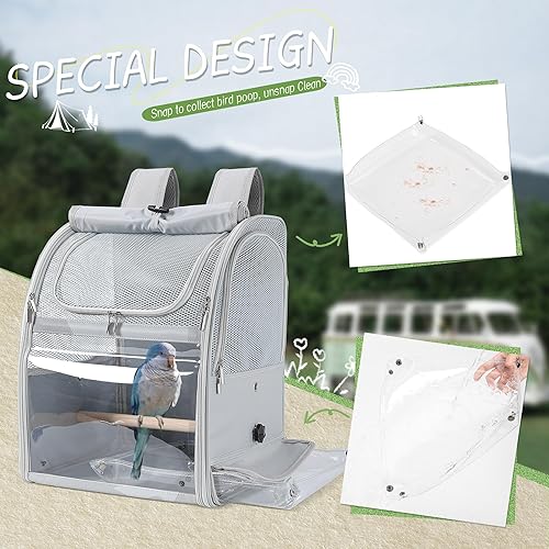 [Adjustable Height Perching] A Sanmoncare bird backpack comes with a perch with two adjustable heights, a easy clean tray to provide a clean and comfortable environment in travel for birds.
