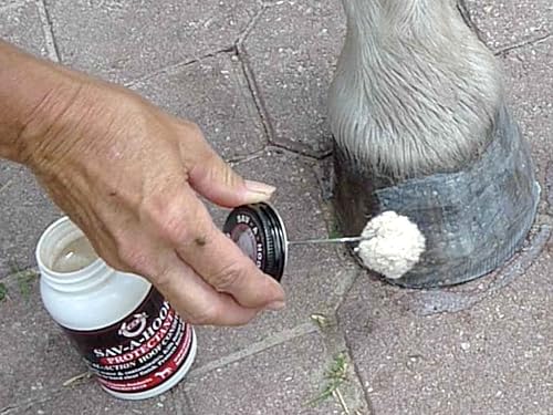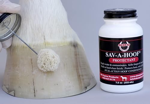 Special ingredients fight white line disease, seedy toe, candida yeast, aerobic and aerobic bacteria, mold and fungi. SAV-A-HOOF Protectant is safe for the horse, humans, and the environment.
