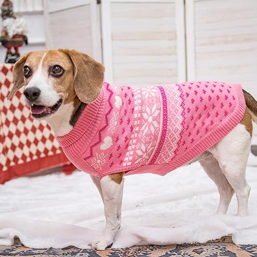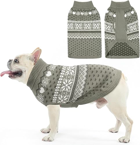 CUTE DOG KNIT SWEATER: This dog winter coat is rich in winter vibes with a knitted pattern of hearts and snowflakes. Three colors for boys and girls. Walking your dog down the street in a Christmas sweater is sure to be very conspicuous.