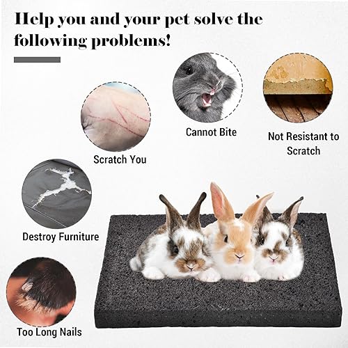 Natural and Safe Materials:bunny scratching pad is made of volcanic lava material, which is of good quality, safe and durable. The natural mineral-rich material can both help your pet grow healthily and provide a fun chewing experience for them