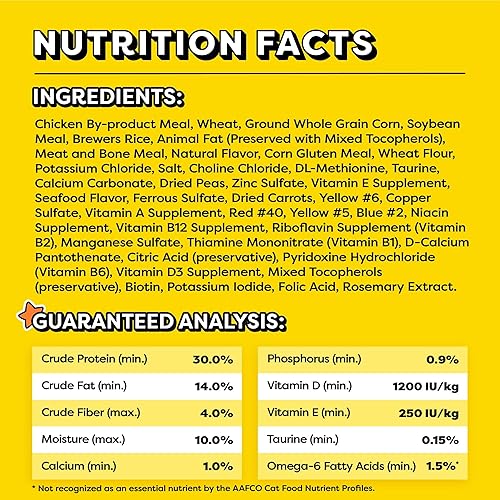 100% Complete and Balanced for Adult Cats: This delicious dry cat food offers your feline friend 35 vitamins, minerals, and amino acids; Omega-6 Fatty Acids help maintain shiny fur; Calcium and Vitamin D support healthy teeth and bones