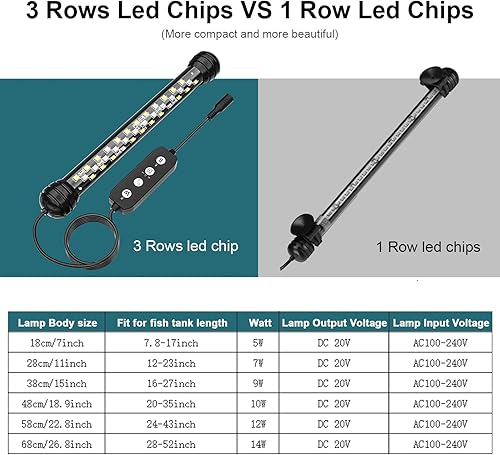 ★High-Quality Led: Using high-quality SMD2835 led chips. Compared with other tank lights, up to 3 columns of led chips, they are more compact and beautiful. And no need to worry about the over bright issues, 10 level intensities you can adjust