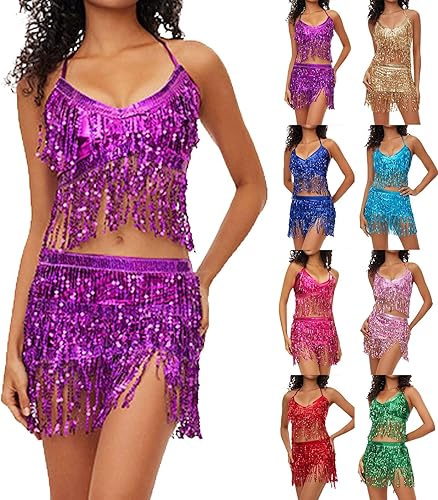 GLAMOROUS DESIGN: Stunning sequin top featuring eye-catching fringe details perfect for dance performances and special occasions