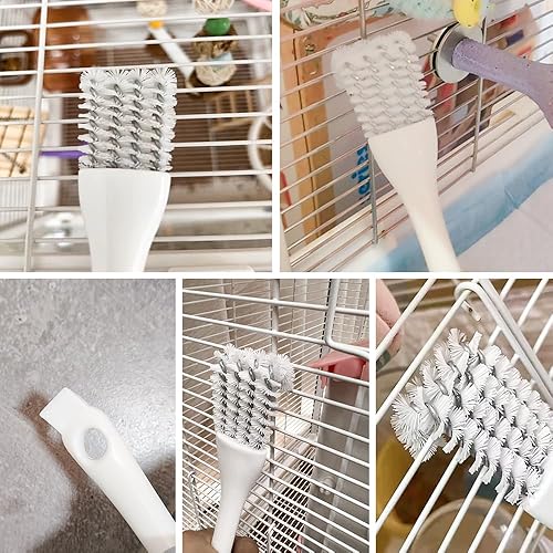 DUAL CLEANING TOOLS:2 Pcs Set includes a metal scraper for tough debris and a brush for thorough cleaning of bird cages, perches, and accessories