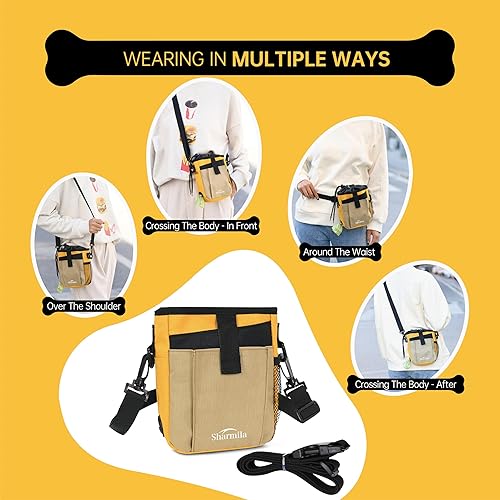 Durable Construction: Crafted with high-density Oxford waterproof fabric exterior and heavy-duty lining, this dog treat bag withstands muddy trails and rainy walks. Three color variants (khaki/army green/yellow) use fade-resistant dyes – after 100+ washes, colors stay vibrant as day one.