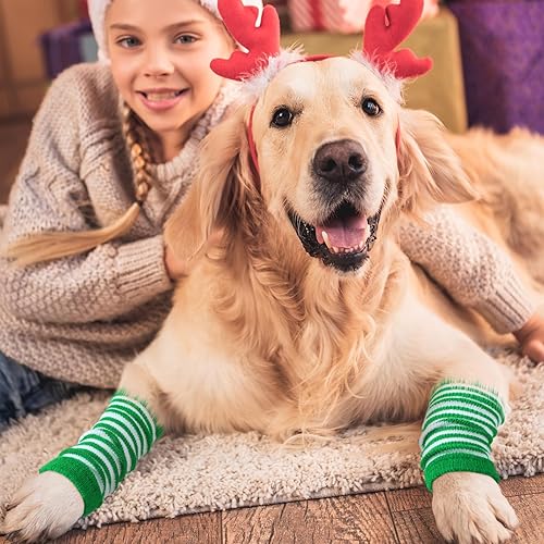 Dog Leg Socks Material: dog leg socks are made of quality knitted fabric, gently wrapping the dog's legs, providing comfort and warmth for your pet, they can be machine washed, making it a nice winter accessory for your pet