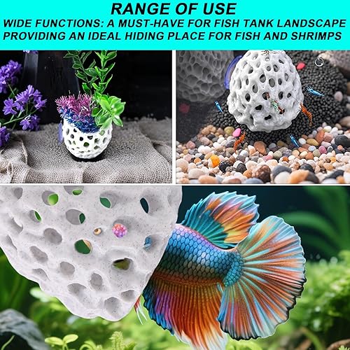 Wide Application: The fish tank shrimp hideout is perfect for shrimps, betta fish, and other small aquatic creatures. It serves as both a functional shelter and an attractive aquarium decoration, enhancing the visual appeal of your fish tank.