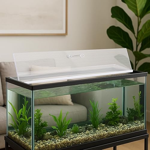 Functional Material and Design: enjoy the flexibility of the aquarium lid made from polycarbonate greenhouse panels, a material that is less fragile and lighter than glass, not easy to deform, remember to tear the film for optimal clarity, please measure your tank opening to the closest millimeter before purchasing