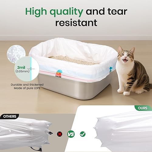 2.Reinforced Durability for Long-Lasting Use Constructed with heavy-duty, puncture-resistant material, these litter box liners resist claw damage and prevent cat litter leakage. Maintain a tidy space with confidence—no tears, no spills, and no compromised hygiene.