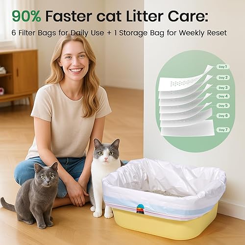 3. 7-Bag Weekly Hygiene System Each package contains 6 pre-filtered litter bags + 1 non-filtered utility litter bag, aligning with a 7-day litter maintenance routine. The non-filtered litter bag serves as a backup for storage or transport, ensuring seamless transitions between changes.