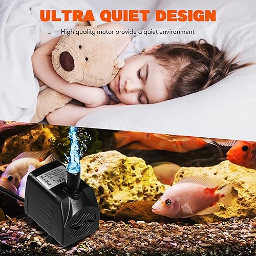 Quiet and Long-lasting: Our fish tank pump features an ultra-quiet motor, offering a quiet environment for your life. Meanwhile, the motor is durable and corrosion-resistant, ensuring a reliable performance.