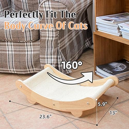 Two-in-One Design: This sisal scratching cat bed combines a durable scratch pad for cats into a sleek cat lounger scratcher hammock, serving as a sturdy cat scratching post and a cozy cat scratcher lounge for play, rest, and claw care