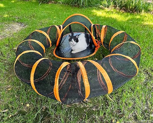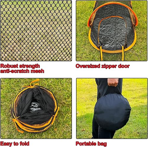 ALLOWS INDOOR PETS TO SAFELY ENJOY A DAY IN THE SUN – Perfect for everyday use on your deck, lawn, balcony, and more. Allows animals and other small pets to safely enjoy a day in the sun with a 360-degree view, while keeping unwanted predators out. We recommend testing the play tent indoors prior to indoor/outdoor use,Width & Height after expansion 47.2" x 17.7"(120cm x 45cm), 9sq.ft, 1 surround tunnel: 110X10.6in, mesh per square meter: 70g.