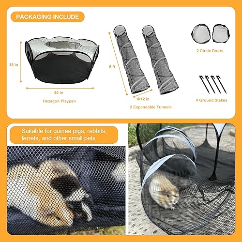 Perfect for Guinea Pigs & Small Pets :This small animal playpen is specially designed for guinea pigs, with a spacious tent and total 10ft long tunnels for running and exercise. Also great for bunnies, rabbits, chinchillas, ferrets.