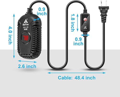 DaToo 50W Small Aquarium Heater -- A warm water temperature can always bring happiness to the fish. They can freely play around in the water without worrying about the cold, which will make them healthier and more energetic. DaToo 50W aquarium heater, three-point temperature control system, sturdy and durable, real-time temperature display and external temperature adjustment, safe and easy to use, not only can easily create a warm underwater world for your fish, but also bring them happy.