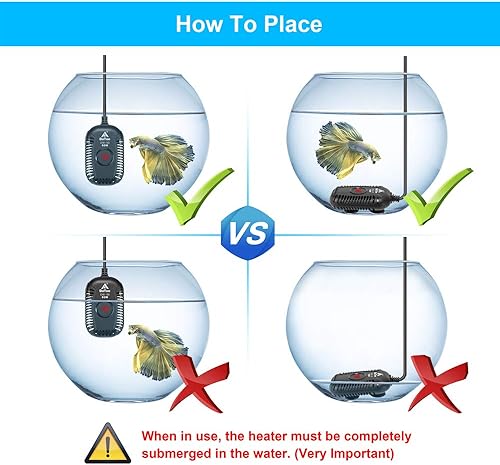 One Year Warranty & Satisfaction Guarantee: This is a 50W small size heater, ideal for 2~10 gallon aquariums. Suitable for fresh water and salt water. When in use, it needs to be submerged 100% in water. We provide one year warranty and 24 hours professional customer service. Buy With Confidence!