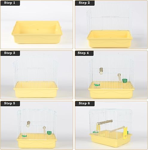 QUICK-SETUP PARAKEET CAGE WITH ESSENTIAL ACCESSORIES - Effortlessly assemble this bird cage for parakeets using included tools, 2 anti-escape clips, and 2 solid wood supports. Comes with a food container, water fountain, and Drop-proof tray for stress-free feeding and cleaning