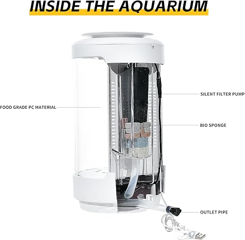 Adjustable LED Light: The small aquarium features a built-in waterproof full-spectrum LED light that provides ample illumination for your fish and their surroundings, creating a soothing and relaxing environment.