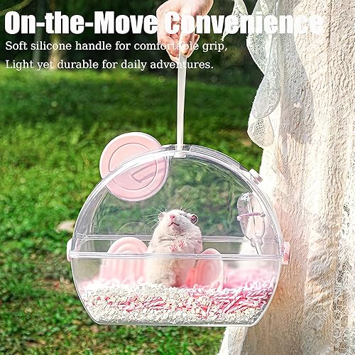 【Comfortable & Portable with Silicone Handle】Designed for ease, the soft silicone handle ensures a comfortable grip, while the lightweight yet durable acrylic construction makes this hamster travel cage transport a breeze. Take your pet on adventures—shopping, vet visits, or picnics—with zero hassle.