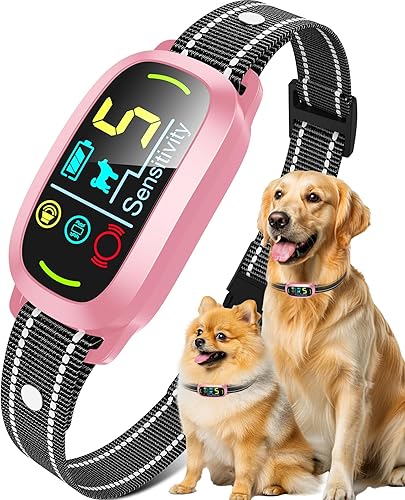 Rechargeable & Easy-to-Use LCD Screen: This rechargeable dog bark collar charges in 2 hours and lasts up to 18 days. The clear LCD display shows battery level, sensitivity level, and working mode for hassle-free operation. Type-C charging cord prevents loss