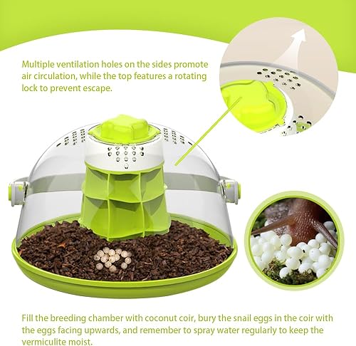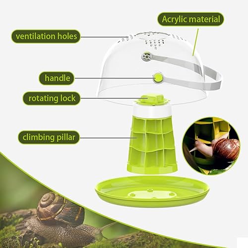 Clear Observation: The all-around transparent design allows for clear observation of your snail’s behavior. Multiple ventilation holes on the sides promote air circulation, while the top features a rotating lock to prevent escape. This setup meets the growth needs of snails, simulating their natural environment.