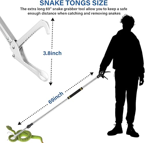 MATERIAL AND SIZE:The Snake Tongs is made of thickened stainless steel rod material,strong and durable,not easy to bend, the snake grabber heavy duty is 69 inches long,the snake grabber has enough safe distance when catching snakes and handling snakes