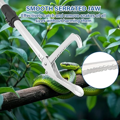 WIDE JAWS:Smooth serrated wide jaws make snake grabber tool easier to grab snakes of all sizes without hurting them