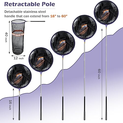 【Retractable Pole】This snake grabber net has a detachable stainless steel handle that can extend from 16" to 60" giving you plenty of room to feel safe while capturing snake. Perfect for removing snakes from hard-to-reach areas