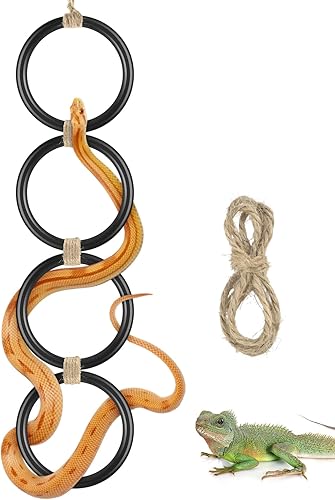 Snake Climbing Rings: The four rings of the ball python snake climbing enhancement toy are linked by natural hemp ropes. Each ring is perfectly suited for climbing and coiling, providing pet snakes with new exploration paths and allowing them to fully enjoy the fun of climbing