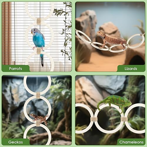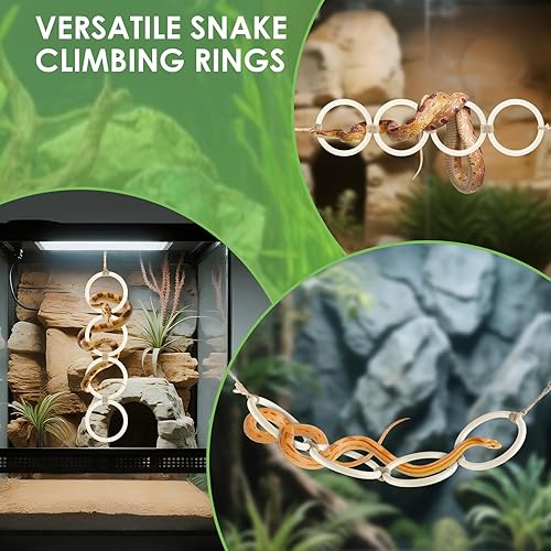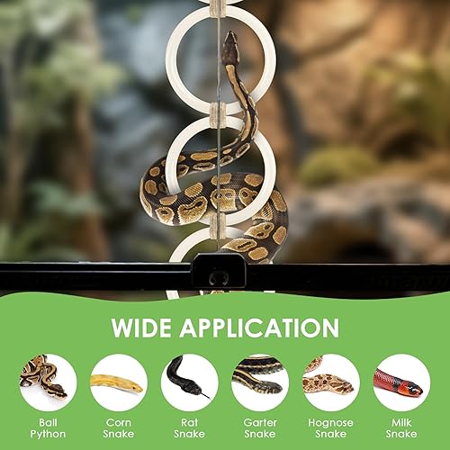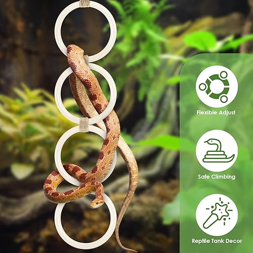 Multi-Species Enrichment Rings: Each ring in the habitat climbing rings is 3.46 inches in diameter, making them suitable for ball pythons(up to 5 feet), corn snakes, hog-nose snakes, juvenile pythons, chameleons, bearded dragons, geckos, lizards, iguanas, and parrots. The surface of each ring is smooth, and the connections are made of natural hemp rope, ensuring they won't harm the snake's scales and can be used with peace of mind