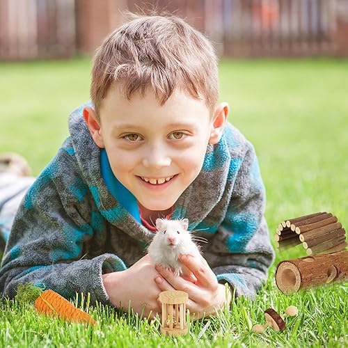 【Natural&Safe】Our hamster toys are made of 100% natural wood, safe and durable for chewing and biting. Let your pets to have a lot of fun in their own place. Natural and handmade rodent toys for your pets.
