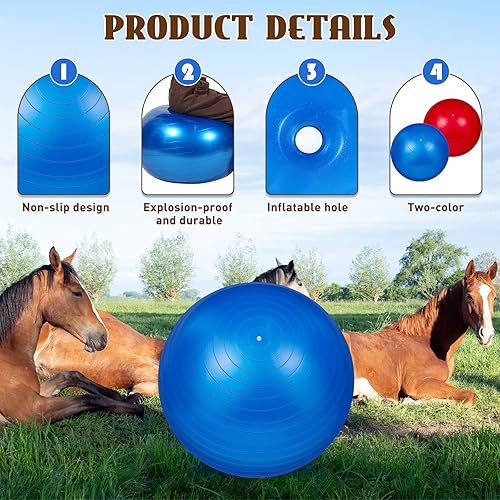 Herding Ball for Horse: horses are dichromatic vision, sensitive to blue and red colors; Our blue and red horse play ball fits the visual senses of horses, can help your horse build curiosity and courage and confidence