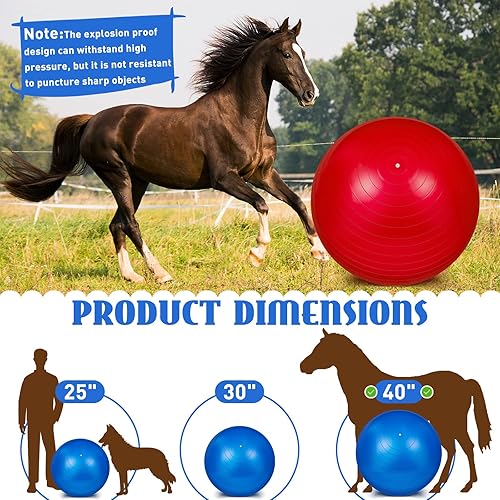 Easy to Inflate: the 40 inch horse herding ball is easy to use, just use the included portable inflation kit to inflate to 40 inches (100 cm), and then use the air plug to block it after filling, it takes a long time (approx. 30 min) to inflate the ball, but if you have a compressed air machine (not included), it would be better and easier to inflate; To avoid burst, please do not over inflate the ball