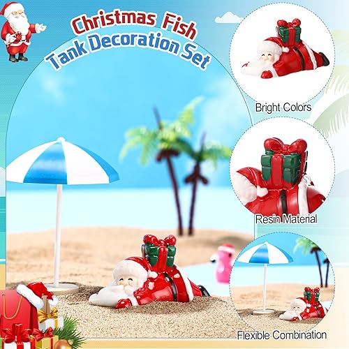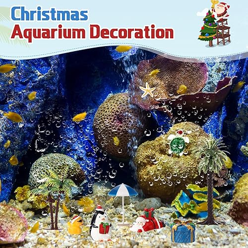 Christmas Fish Tank Decorations: this set includes 18 Christmas aquarium decorations, featuring a lounging Santa Claus, Christmas tree, coconut tree, surfboard, turtle, umbrella, gnome, reindeer, penguin, starfish, gift box, Christmas duck and so on; With a fun blend of tropical and festive elements, these miniatures are perfect for Xmas scenes and DIY displays