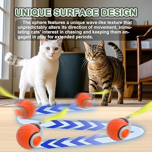【Interactive Cat Toy】The Speedy Tail 2.0 cat toy can move randomly and pull repeatedly. The ball surface features a special wave texture, increasing the unpredictability of movement direction and continuously stimulating your cat's chasing instinct.