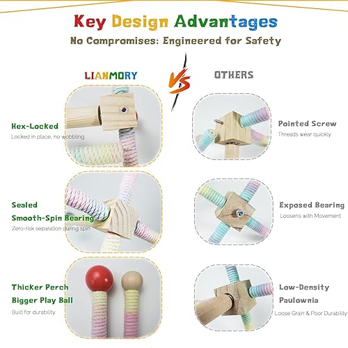 360° INTERACTIVE SPINNING BIRD TOY: Features built-in bearing for smooth bidirectional spin (no falling screws). 4 colorful 3.9" perches for climbing or you can spin it to interact, perfect for bird entertainment and reducing anxiety