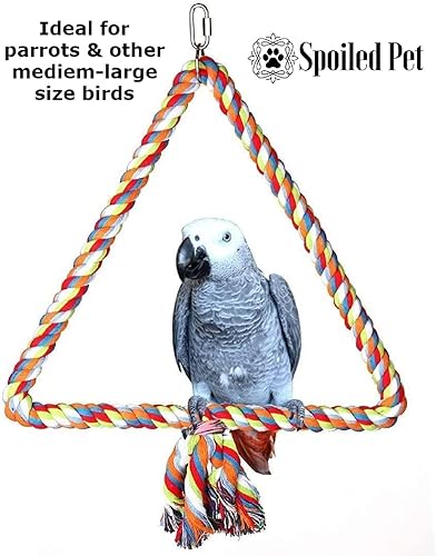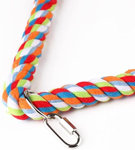 ❤️ Safe and Natural Materials- Rope swing is made of a steel rod base covered by all natural 100% cotton with non-toxic food grade pigment coloring. Safe for your bird to chew and climb!