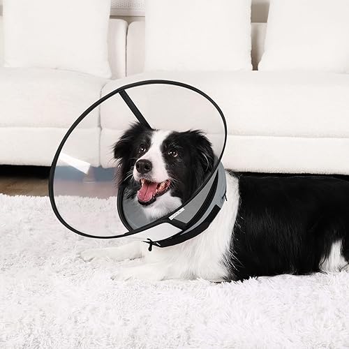 【Clear Vision, No Discomfort】 – The attachable plastic shield is made from high-transparency material, so your dog can see clearly and stay aware of their surroundings. Unlike bulky cones, this cone of shame alternative won't block your pet’s vision—helping them feel safer and more relaxed.