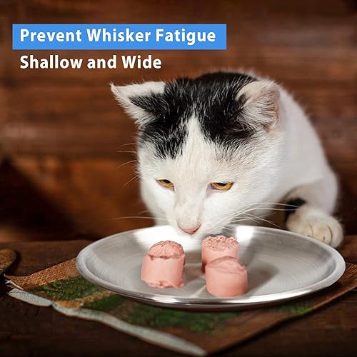 Shallow & wide design: HELPS PREVENT WHISKER; a stressful & painful condition when your cat's sensitive whiskers brush up against the side of its feeding or water bowl.