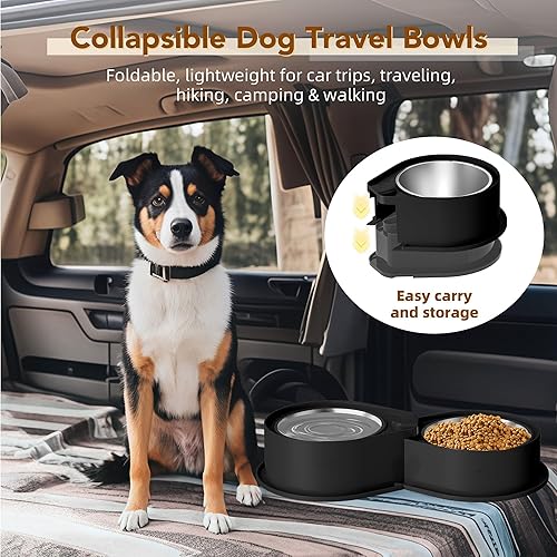Easy to Clean: Collapsible outdoor dog food and water bowl is ideal for camping, hiking, and indoor daily feeding. Stainless steel double dog bowl is safe for dishwasher and hand washing, ensuring quick and efficient cleaning to save you time