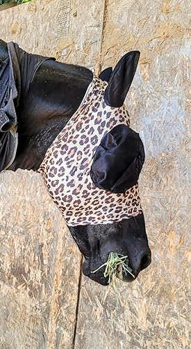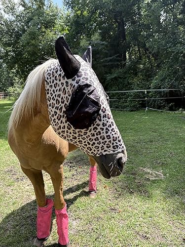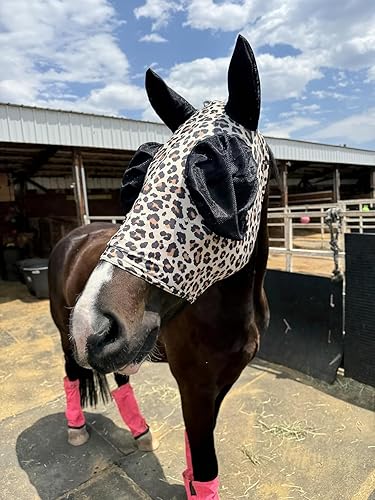 Stylish Protection & Versatility: Featuring an eye-catching leopard-print design, this mask adds personality to any turnout while delivering essential defense. Molded ear pockets accommodate floppy or upright ears without folding or pressure, maintaining natural ear position. Suitable for trail riding, pasture grazing, shows, or barn work, it pairs seamlessly with bridles, halters, and fly sheets. Offered in multiple sizes, the custom-fit range ensures proper coverage for ponies and large breeds alike. UV-protective performance and durable mesh ensure it remains functional and fashionable.