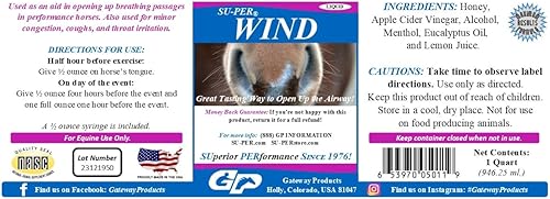 EASY BREATHING: many years, our SU-PER Wind has been the top choice at racetracks around the country for “opening up” breathing passages in race horses, and allowing the horse to breathe easier during the race.