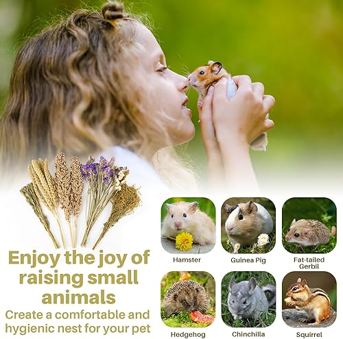 What You Get: Natural herbs in the form of dried flowers from plants, safe for hamster health. These dried flowers help create a natural environment, making them ideal for habitat bedding decoration, hamster snacks, or even for use in rat cages and habitats