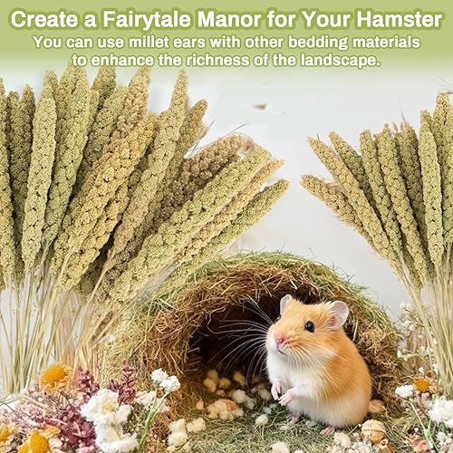Natural Decor For Hamster Homes: Made from natural hamster millet, these small and soft grain ears add a warm and organic touch to hamster cages. Their texture satisfies hamsters' natural chewing and exploring instincts while enhancing their environment. Place them in hamster hideouts to create a cozy and comfortable habitat