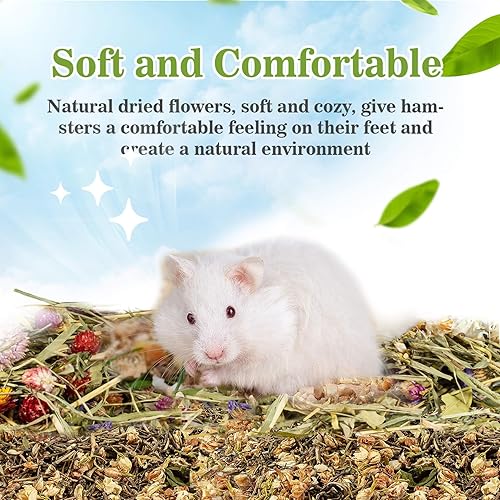 Natural Hamster Rabbit Bedding Mate: Flower and herb pet bedding, natural and no additive, suitable for a variety of small pets. Comfortable and soft for feet of them, natural fragrance, effective deodorization.Hamster bedding set creats a natural and comfortable life for hamsters