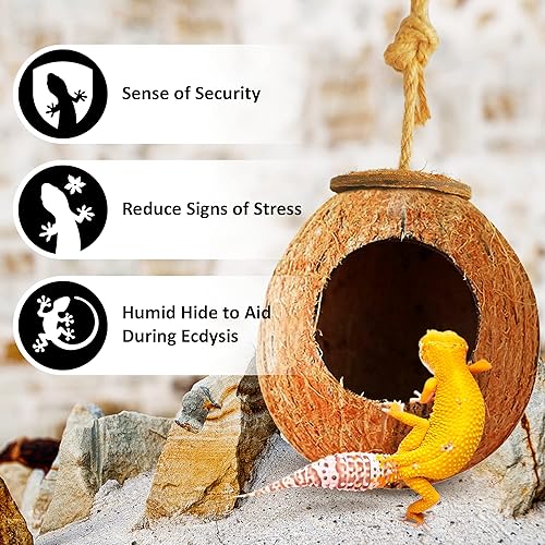 Ideal hide-out and treats keeper --- Aside from its fun and charming design, our tank decor also serves as a hideaway and a secure shelter for your geckos. Crested Geckos are crepuscular, and it is normal for them to hide during the daytime. It also has enough space to keep treats for them to search.